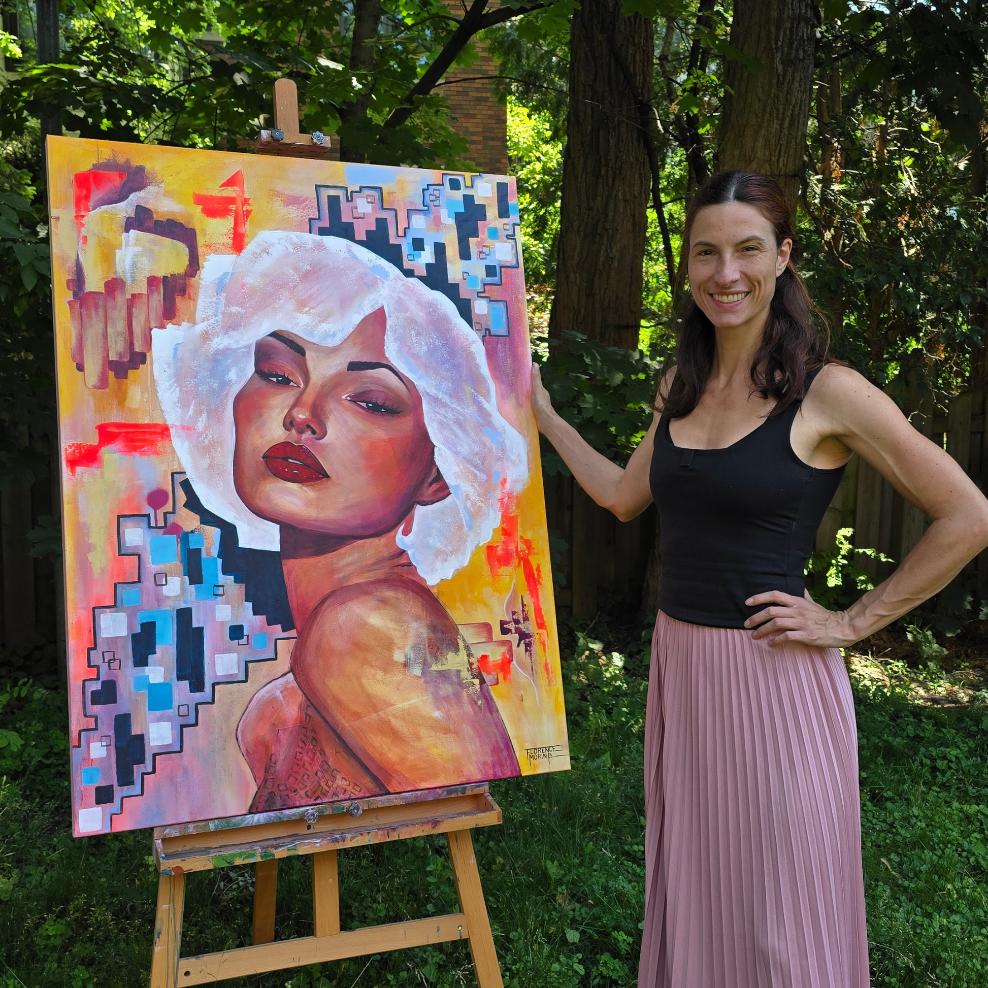 Florence est une ariste montréalaise travaillant à l'acrylique et au fusain. Elle vous partage ses reflexions sur le thème de la technologie, de l'humain et de la force au féminin à travers son art.